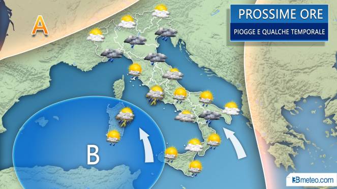 Un vortice depressionario, responsabile di maltempo tra Tunisia e parte della Spagna, resta in azione sul Mediterraneo occidentale penalizzando ancora parte della nostra Penisola, raggiunta da umide correnti meridionali in risalita lungo il suo bordo orientale. Ci attende così un mercoledì ancora instabile su Sardegna, medio-alto versante tirrenico e Liguria raggiunti da rovesci e temporali, a tratti anche intensi. Attese piogge sparse anche tra Basilicata, Ioniche, interne adriatiche, Puglia, Val padana e alto Adriatico.