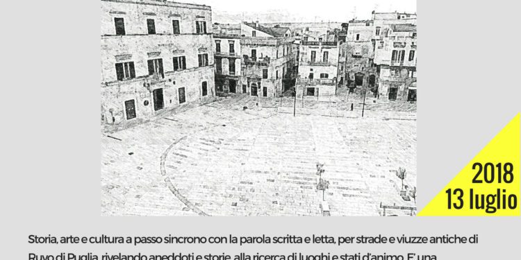 E’ una passeggiata nella Ruvo di Puglia romana, medievale, moderna e contemporanea. Una passeggiata nel tempo, nelle relazioni spazio-temporali, nella letteratura e nella poesia. Ogni sosta è accompagnata dalla lettura di un testo scelto per la bellezza e la relazione con il contesto.