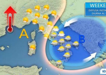 METEO WEEKEND, ITALIA DIVISA IN DUE - Alta pressione in ulteriore rinforzo al Centro-Nord mentre una blanda circolazione di bassa pressione alimentata da...