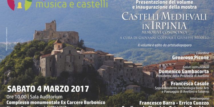 AVELLINO – “Castelli Medievali in Irpinia. Memoria e Conoscenza”: sabato 4 Marzopresentazione del volume e inaugurazione della Mostra incentrati sul lavoro di ricerca e schedatura storica e fotografica dei Castelli medievali d’Irpinia, un notevole e impegnativo saggio alla cui realizzazione hanno partecipato professori universitari, funzionari della locale Soprintendenza, studiosi, ricercatori, disegnatori e fotografi.