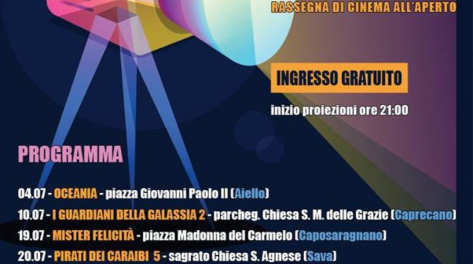 In occasione dell’inaugurazione della rassegna cinematografica itinerante sotto le stelle, in programma per mercoledì 4 luglio alle 20.30, sul piazzale antistante la Chiesa di S. Pietro di Aiello, in contemporanea con la proiezione del film “Oceania”, è stata organizzata una degustazione di dolci e rustici a favore della raccolta fondi, a cura dei volontari dell’associazione Alvaa. Le iniziative di solidarietà per aiutare Donato si susseguiranno per tutta la durata della kermesse.