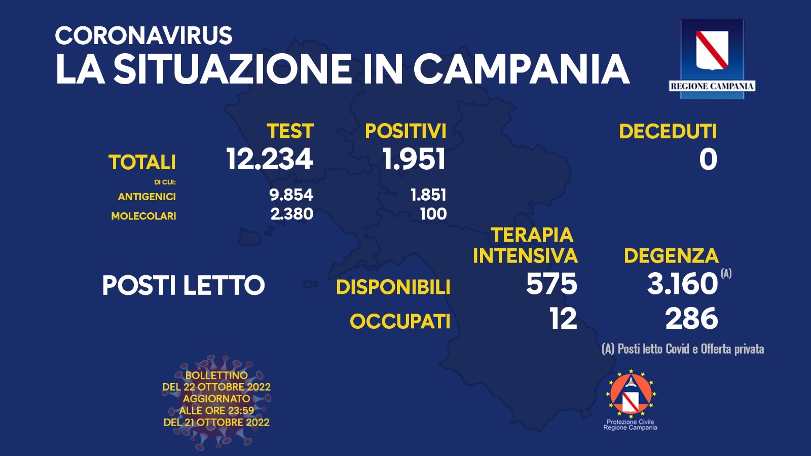 Corona Virus Campania: Totale Positivi: 1.413.415 i deceduti 9.635