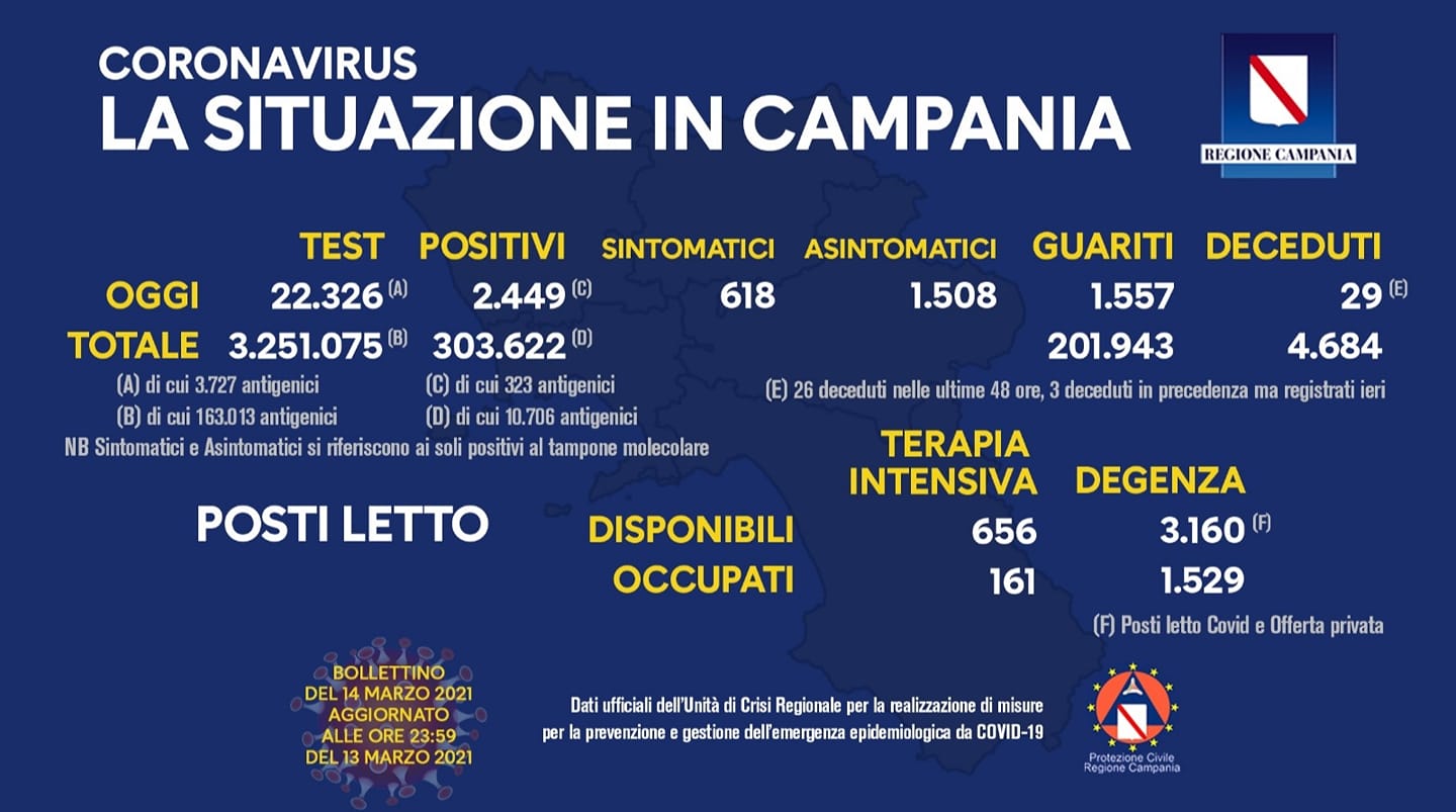 Positivi del giorno: 2.449 (di cui 323 casi identificati da test antigenici rapidi)