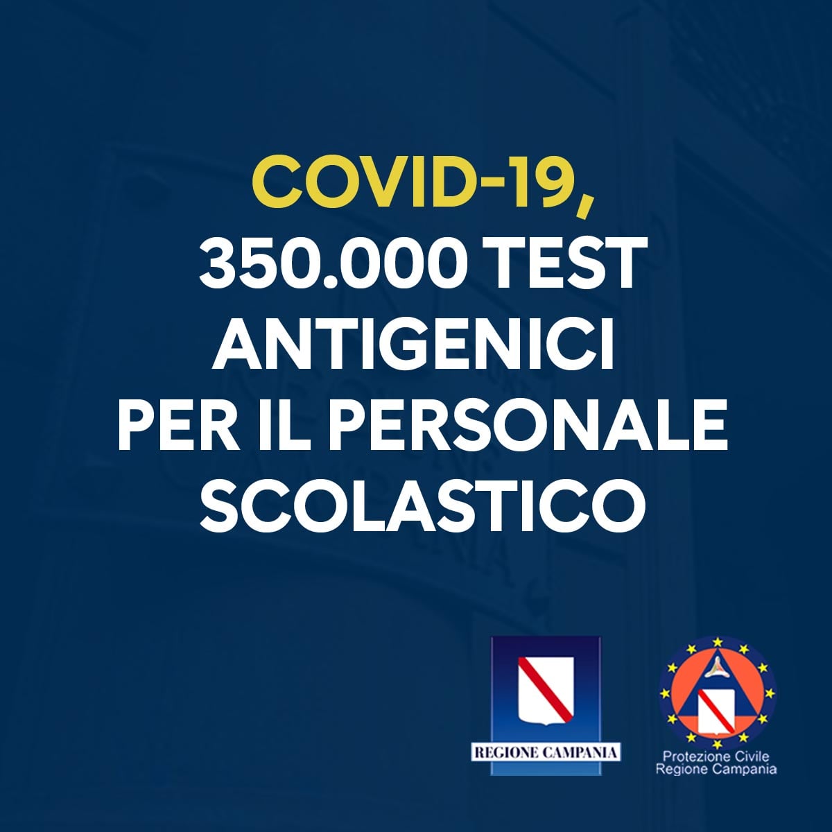 In relazione al programmato ritorno in presenza nelle scuole, compatibilmente con la situazione epidemiologica, la Regione Campania ha chiesto e ottenuto l’invio di 350.000 test antigenici, che arriveranno alla fine di questa settimana. In tempi brevi sarà definito un programma di screening a tappeto per il personale scolastico, e anche per i lavoratori del trasporto pubblico.