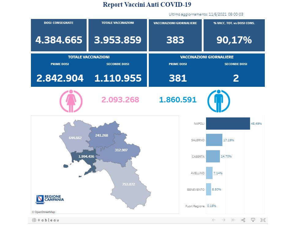 Unità di Crisi Campania: Si comunicano i dati delle vaccinazioni in Campania aggiornati alle ore 8.00 del 11 giugno 2021.