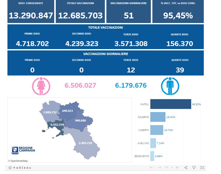 Ecco i dati delle vaccinazioni in Campania aggiornati alle ore 17.30 del 11 settembre 2022.