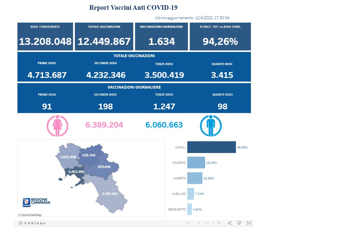 Covid-19 Campania: Bollettino vaccinazioni del 12 aprile 2022