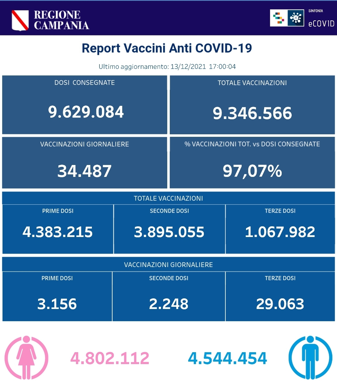 Covid-19 Campania: Bollettino vaccinazioni del 13 dicembre 2021