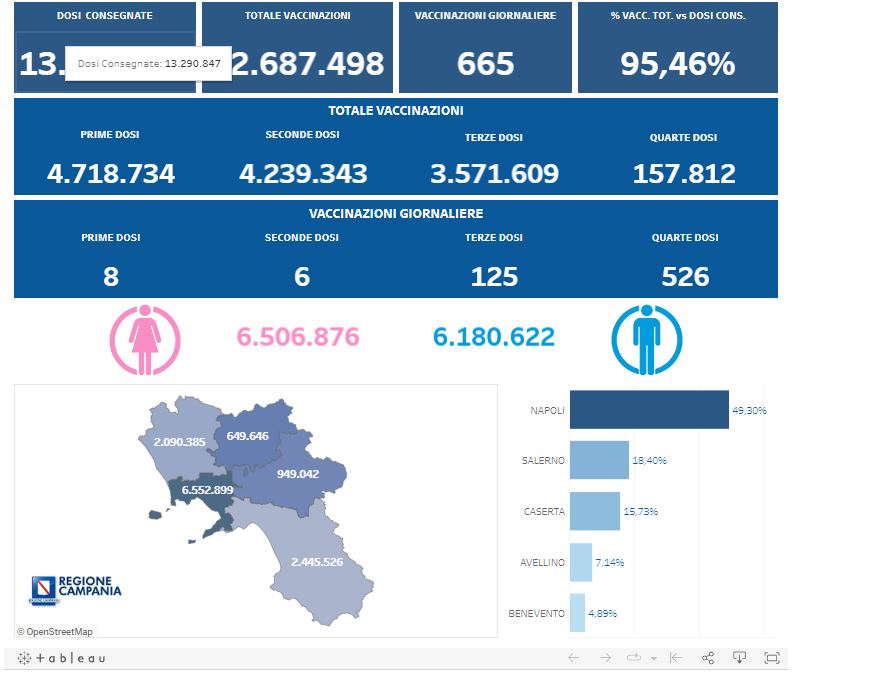 Ecco i dati delle vaccinazioni in Campania aggiornati alle ore 17.30 del 13 settembre 2022.