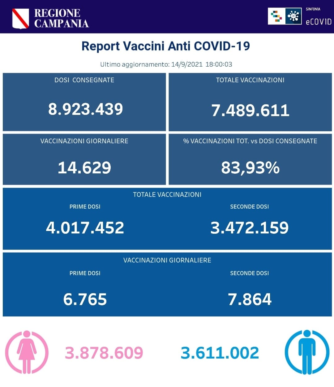 Ecco i dati delle vaccinazioni in Campania aggiornati alle ore 18 del 14 settembre 2021.