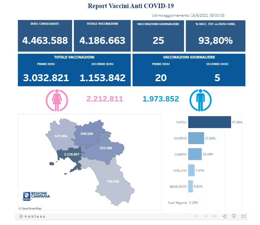 Unità di Crisi Campania: Si comunicano i dati delle vaccinazioni in Campania aggiornati alle ore 8.00 del 16 giugno 2021.