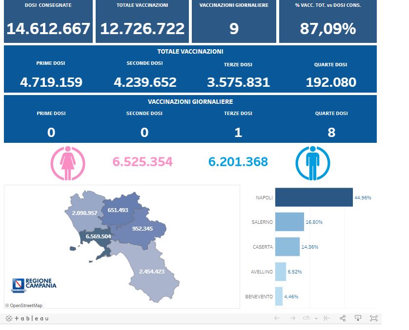 Corona Virus Campania: Totale Positivi: 1.400.549 i deceduti 9.625