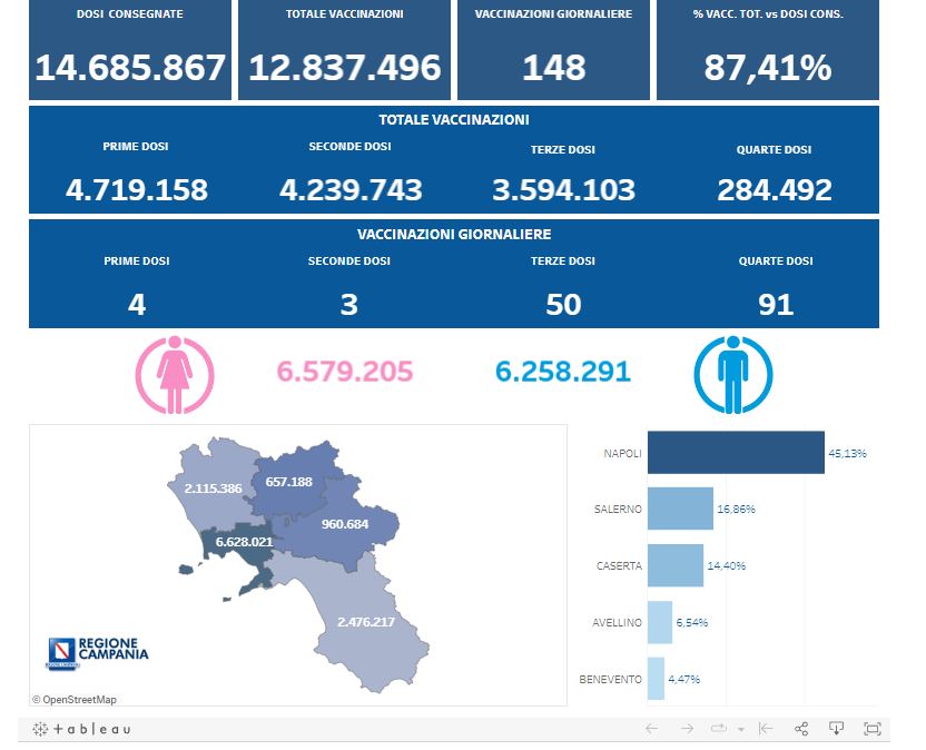 Corona Virus Campania: Totale Positivi: 1.868.214 i deceduti 9.843