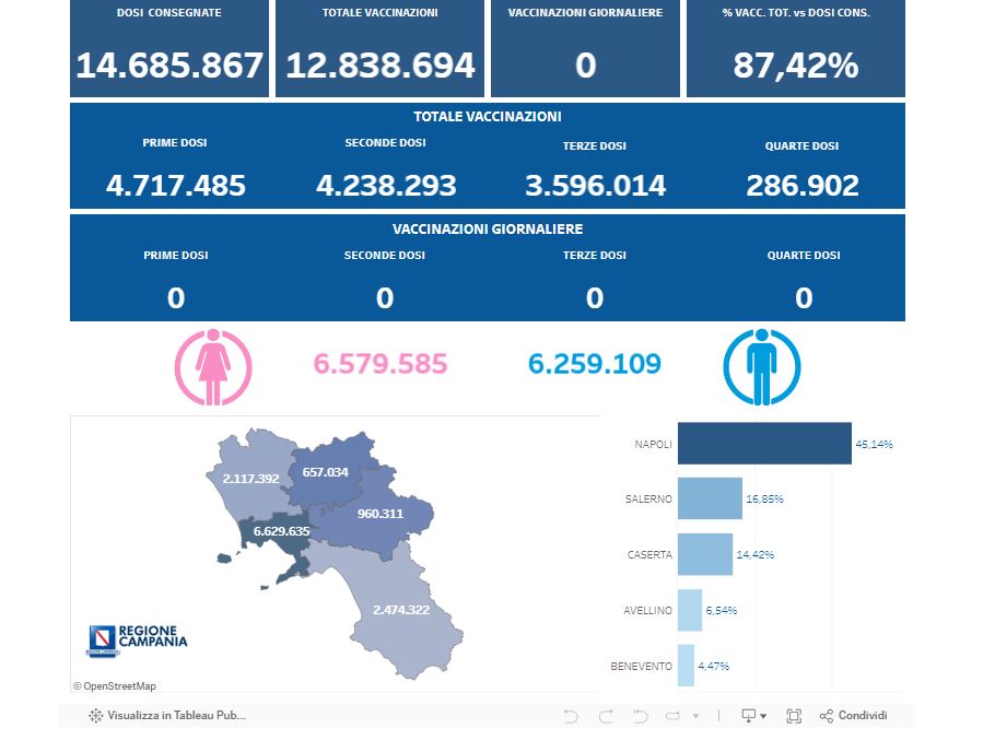 Complessivamente sono state effettuate 4.717.485 vaccinazioni con prima dose, 4.238.293 con seconda dose, 3.596.014 con terza dose e 286.902 con quarta dose.