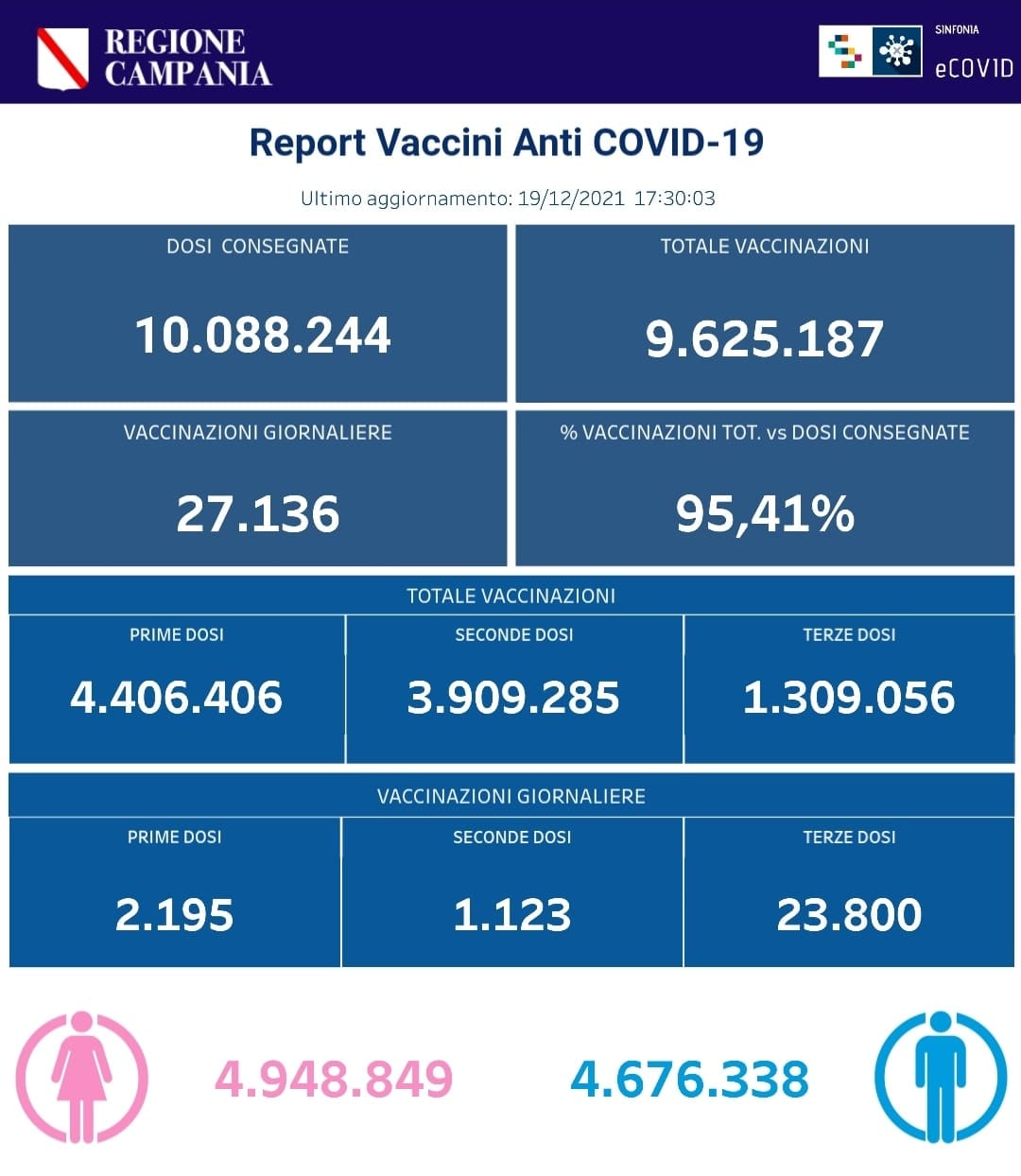 Ecco i dati delle vaccinazioni in Campania aggiornati alle ore 17.30 del 19 dicembre 2021.