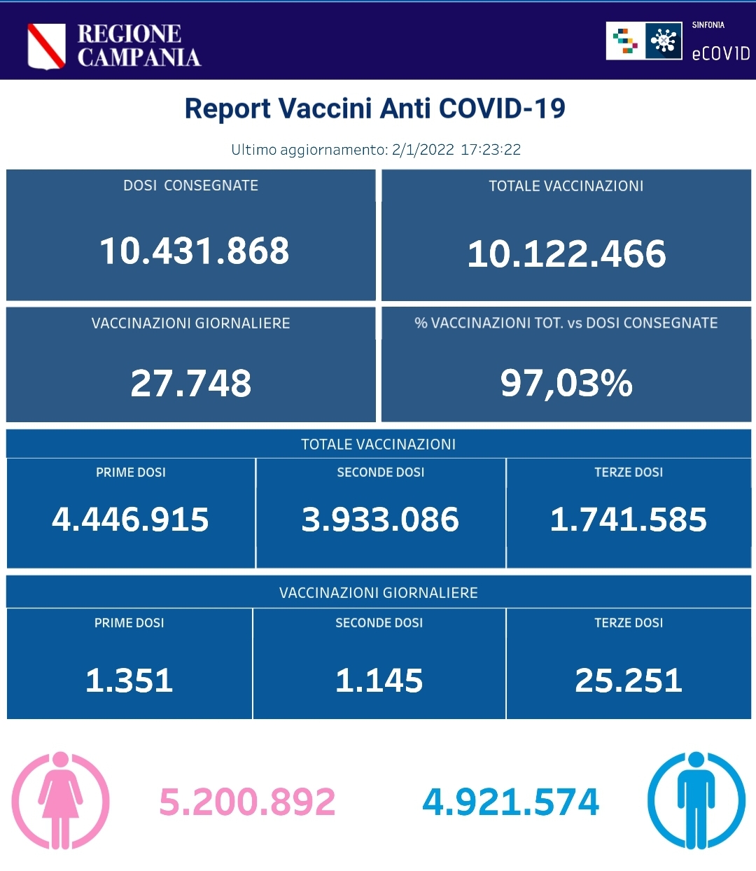 Ecco i dati delle vaccinazioni in Campania aggiornati alle ore 17.30 del 2 gennaio 2022.