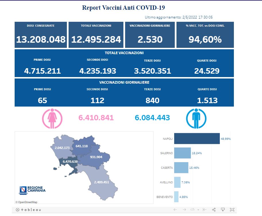 Covid-19 Campania: Bollettino vaccinazioni del 2 maggio 2022
