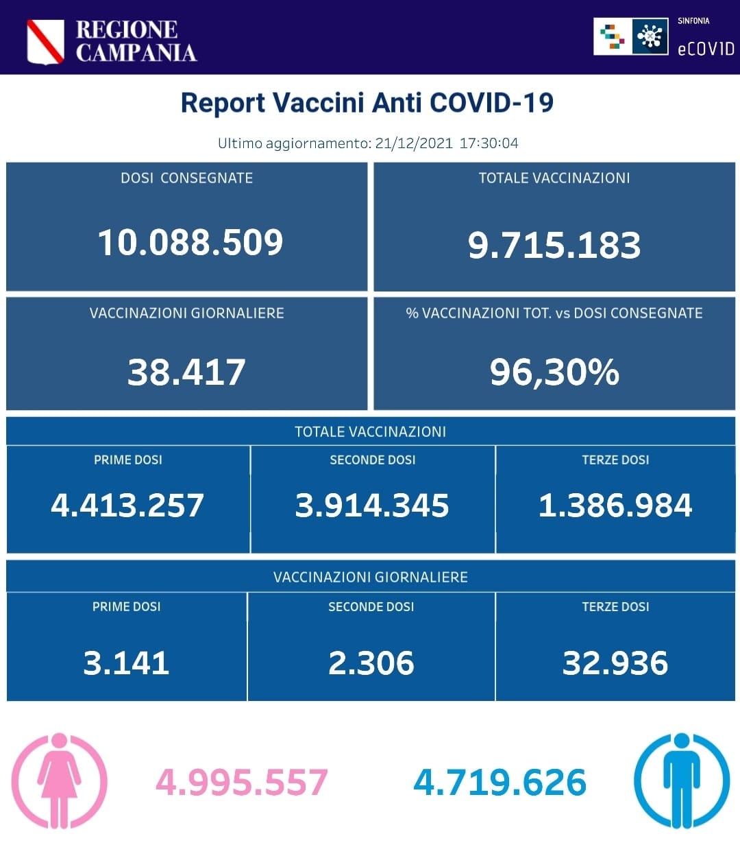 Ecco i dati delle vaccinazioni in Campania aggiornati alle ore 17.30 del 21 dicembre 2021.