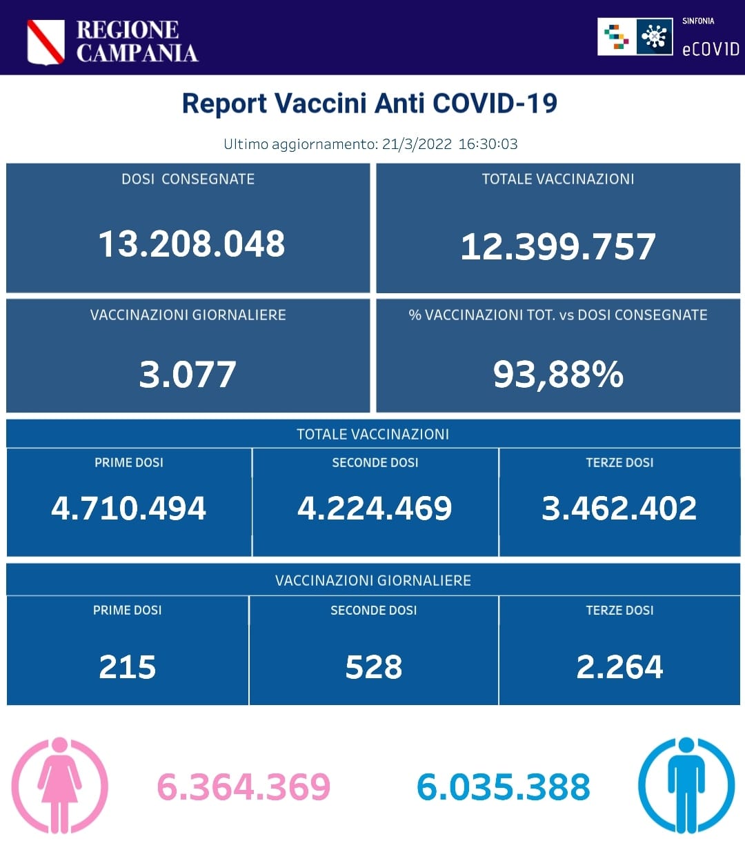 Ecco i dati delle vaccinazioni in Campania aggiornati alle ore 16.30 del 21 marzo 2022.