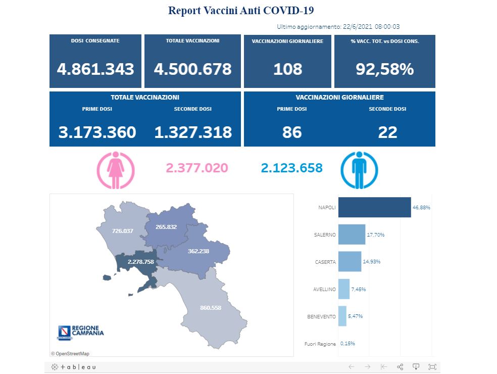 Unità di Crisi Campania: Si comunicano I dati delle vaccinazioni in Campania aggiornati alle ore 8.00 del 22 giugno 2021.