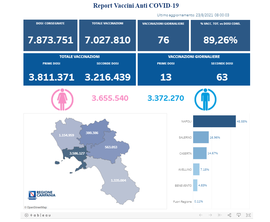 Si comunicano i dati delle Campania aggiornati alle ore 8.00 del 23 agosto 2021.