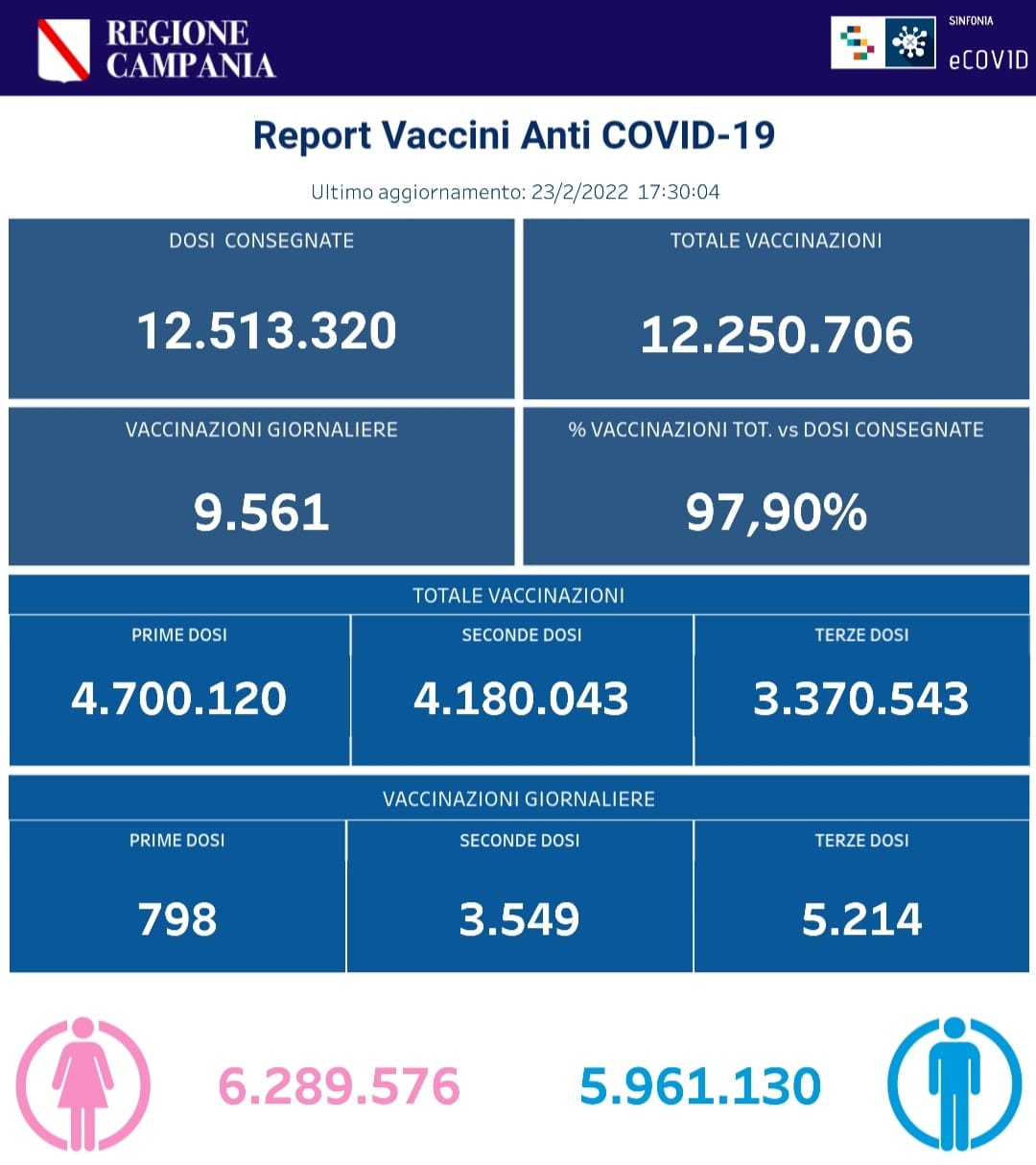 Covid-19 Campania: Bollettino vaccinazioni del 23 febbraio 2022