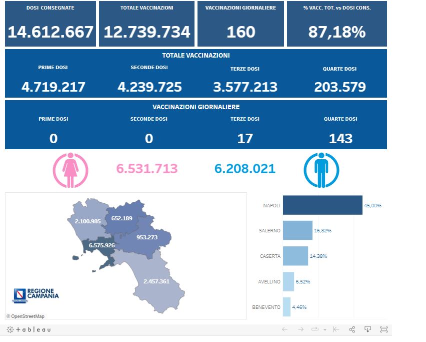 Ecco i dati delle vaccinazioni in Campania aggiornati alle ore 17.30 del 23 ottobre 2022.
