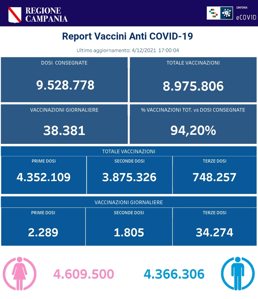 Ecco i dati delle vaccinazioni in Campania aggiornati alle ore 17 del 4 dicembre 2021.