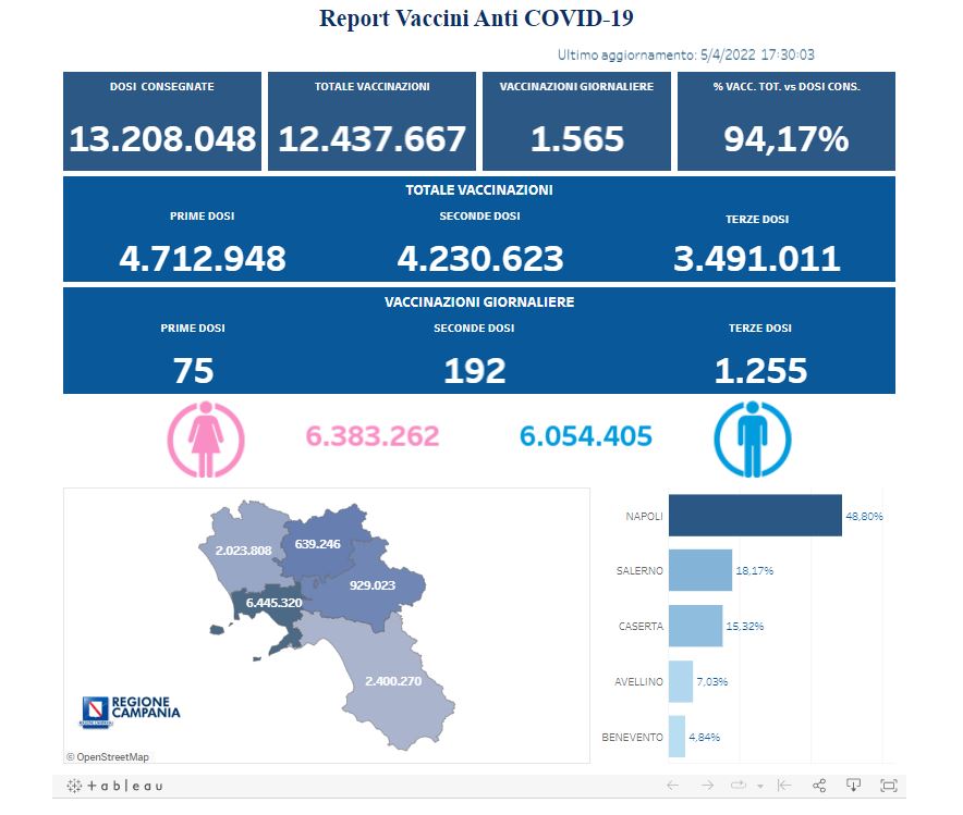 Ecco i dati delle vaccinazioni in Campania aggiornati alle ore 17.30 del 5 aprile 2022.