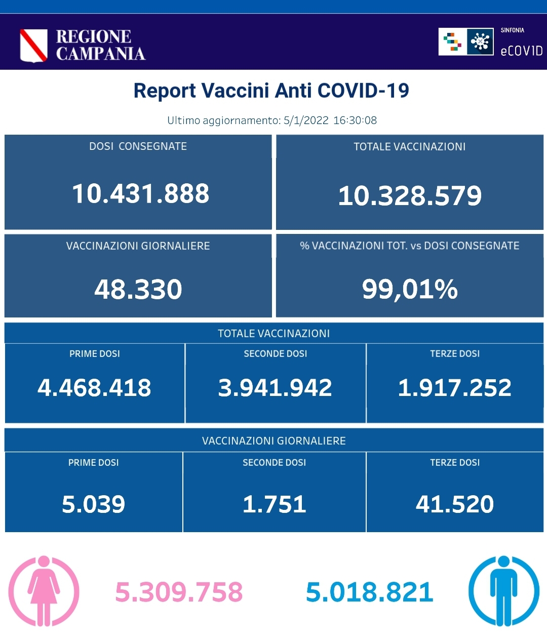 Ecco i dati delle vaccinazioni in Campania aggiornati alle ore 16.30 del 5 gennaio 2022.