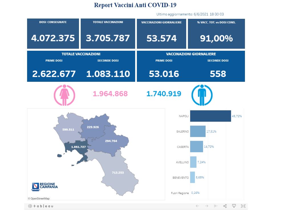 Unità di Crisi Campania: Si comunicano i dati delle vaccinazioni in Campania aggiornati alle ore 18.00 del 6 giugno 2021.