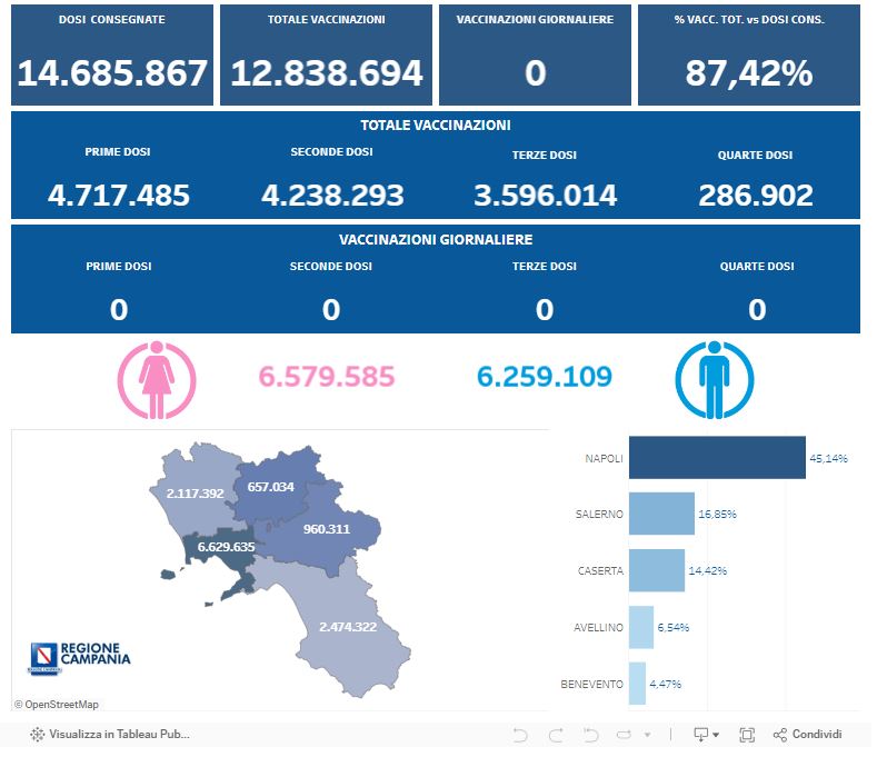 Complessivamente sono state effettuate 4.717.485 vaccinazioni con prima dose, 4.238.293 con seconda dose, 3.596.014 con terza dose e 286.902 con quarta dose.