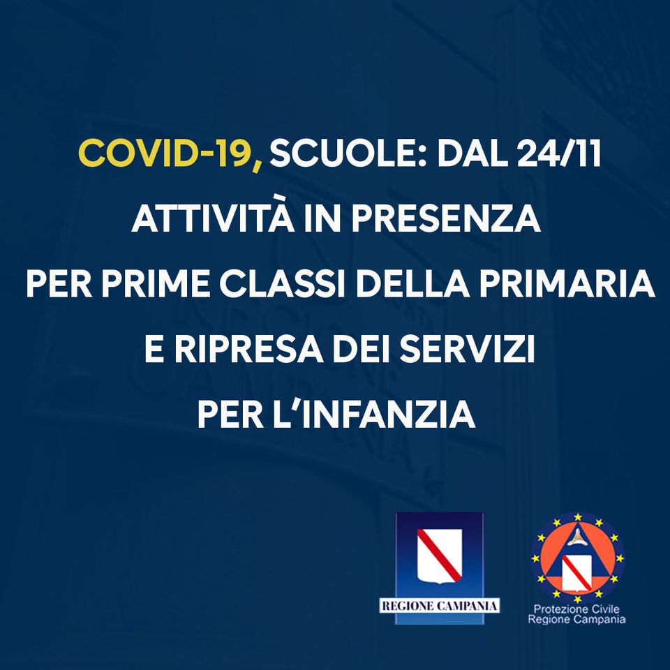 Covid-19 Campania: La scuola riapre il 24 novembre: via libera per infanzia e prima elementare