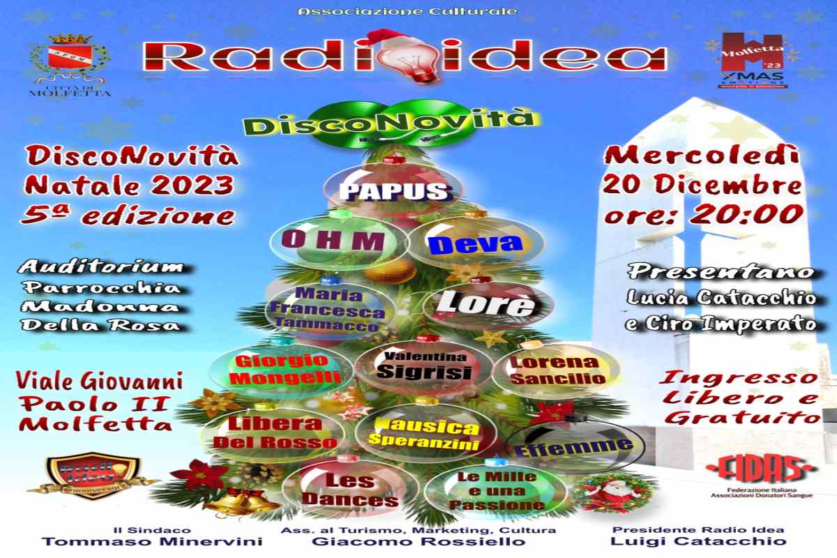 Molfetta, 18 dicembre 2023 – La quinta edizione del “Disco Novità, Natale 2023” si avvicina promettendo una serata magica e coinvolgente, Mercoledì 20 dicembre, alle ore 20:00, presso l’Auditorium della Parrocchia, Madonna delle Rose, in viale Papa Giovanni Paolo II, Molfetta.