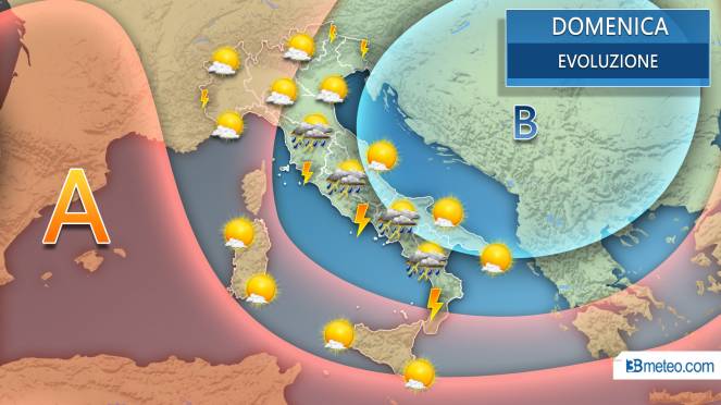Andrà invece decisamente meglio al Nord, dove la domenica trascorrerà con sole assoluto protagonista e temperature in generale aumento (punte di 30°C in Valpadana), così come lungo le coste adriatiche, che seppur con temperature leggermente inferiori, vivranno una giornata con ampi spazi di sereno. Farà eccezione ancora qualche sporadico rovescio o temporale sul Friuli Venezia Giulia e sulle Prealpi venete. Cieli sereni o poco nuvolosi anche sulle due Isole maggiori, seppur con ventilazione sostenuta dai quadranti nord occidentali che manterrà un po ovunque le temperature al di sotto dei 30°C.