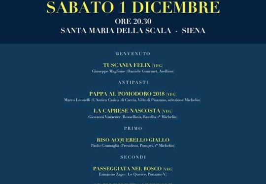 Il benvenuto del menù composto da sette portate sarà affidato proprio a Giuseppe Maglione: un trancio di una sua creazione, la pizza vegetariana Tuscany Felix, un connubio di gusto pensato per l’occasione: impasto al limone, fiordilatte, crema di barbabietola rossa, ricotta e cipolla caramellata di Certaldo, arricchiti da chips di barbabietola rossa, briciole di peperone crusco, pepe e lime. Unico pizzaiolo presente all’evento, Maglione sarà affiancato da altri grandi maestri della cucina italiana e chef stellati e parteciperà, insieme agli altri protagonisti, ad un momento di confronto con la stampa e con gli sponsor.