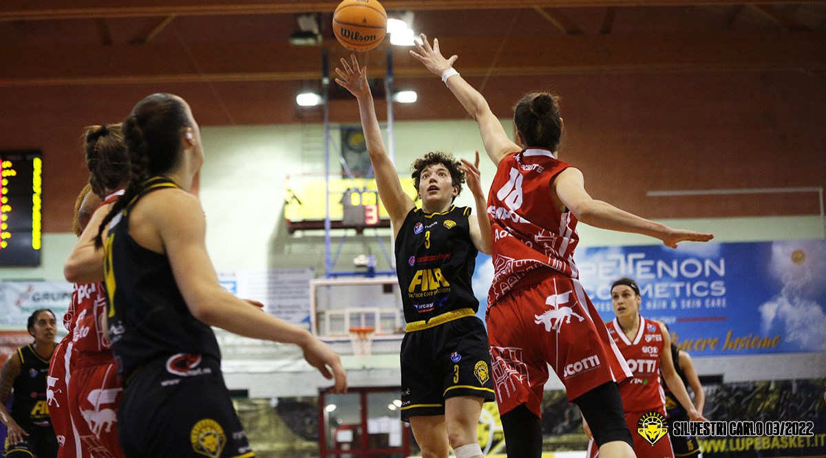 4° QUARTO. La gara ora si è messa in discesa per le padrone di casa, il cui margine non scenderà più sotto la doppia cifra. A brillare è ancora Guarise, che bagnerà la sua prima partita in quintetto base con un career high da 20 punti, mentre sfiora la tripla doppia Kelley, autrice di 11 punti, 14 rimbalzi e 8 assist. Ma è prezioso l’apporto di tutte le ragazze di coach Serventi, che concede minuti utili anche alle tante giovani della panchina. Finisce 71-57, ora per le Lupe rimangono solo due partite per chiudere la stagione regolare: sabato a Faenza e mercoledì prossimo in casa con Campobasso.