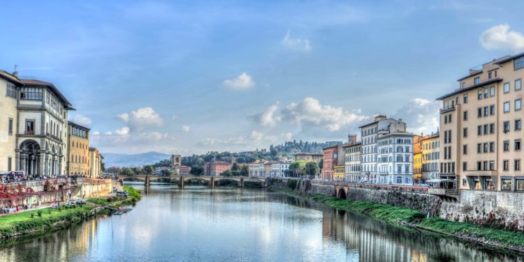 Sorge tra il Valdarno superiore e inferiore entro una cerchia di colli di cipressi olivi e pini. Originatosi da un insediamento dall’età del ferro,fu città romana e dal (1115 al 1434) libero Comune che giunse alla supremazia in Toscana fra i Guelfi e i Ghibellini,Bianchi e Neri, popolo e nobiltà. Furono questi i secoli della grande produzione artistica  romanica,gotica,e del Rinascimento italiano, il periodo che segnò il rinnovarsi di tutta la cultura italiana e che ebbe il suo fulcro nella Firenze del Quattrocento, potente anche economicamente grazie alle attività bancarie e commerciali. L’assetto urbanistico di Firenze è stato chiaramente definito dei grandi periodi storici con le loro cerchie di mura. Si riconoscono infatti un’area centrale romana quadrilatera, con strade tipicamente ortogonali a nord dell’Arno, la più animata ed elegante segnata oggi dal Duomo, da palazzo Vecchio e dal palazzo degli Strozzi.