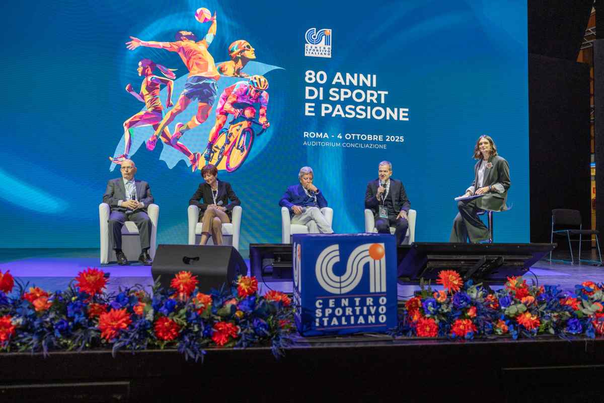 Ottanta anni insieme. La festa di anniversario del CSI, sabato 4 ottobre a Roma, è stata un pieno, grandissimo abbraccio. A cominciare dal primo evento celebrativo, quando in mattinata nella cornice d’eccezione dell’Auditorium Conciliazione, a pochi metri dalla sede storica nazionale della Presidenza del Centro Sportivo Italiano, fra immagini, testimonianze e saluti, davvero carico di affetto ed emozioni è stato il coinvolgimento delle Istituzioni, dell’Associazionismo, del Terzo Settore e dello Sport.