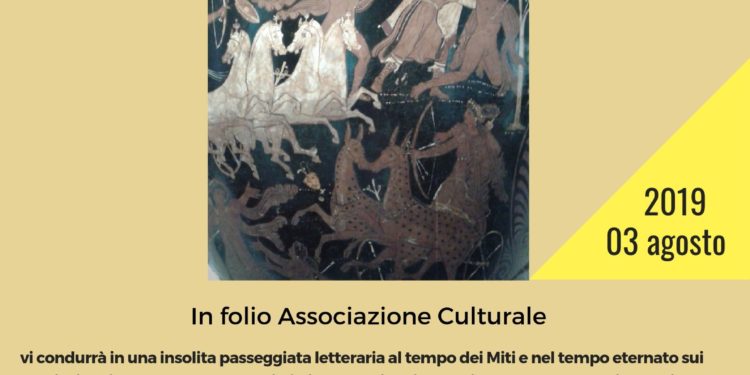 Nell’ambito della rassegna estiva Immaginari – scene d’estate 2019 del Comune di Ruvo di Puglia, In folio Associazione Culturale, in collaborazione con la Pro loco, ripropone, dopo il successo dell’estate 2018, la sua insolita Passeggiata letteraria al tempo dei Miti e nel tempo eternato sui preziosi vasi del Museo. Protagonisti di questo viaggio sono il Museo Archeologico Nazionale Jatta, i miti, la poesia, il fascino della storia e della potenza narrativa della pittura. Conosceremo le divinità Niobe, Efesto e le Nereidi, Eracle e Le Esperidi, Bellerofonte e Talos, leggeremo del loro mondo leggendario, di storie d’amore e guerra, di passione e indifferenza, di coraggio e paura. Ci avvicineremo alla poesia dipinta sui vasi e giunta ai nostri tempi con immutato splendore artistico e storico.