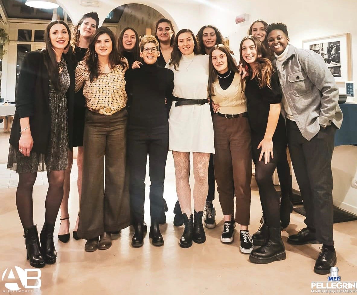 Si è svolta, dopo un anno di assenza causa Covid, la tradizionale cena natalizia dell’Alpo Basket: atlete e staff della prima squadra, dirigenti, sponsors e autorità si sono ritrovati ieri sera al “Bue d’Oro” di Valeggio sul Mincio. Una serata festosa in cui ha fatto gli onori di casa il Presidente Renzo Soave che ha ringraziato in particolare Roberto Dal Bosco, uno dei main sponsor della società: «Noi siamo qui ed esistiamo solo perché ci sono persone come Roberto che ci dànno una mano fondamentale – ha detto il massimo dirigente biancoblù – Questo è forse l’anno più difficile da quando sono presidente e cioè dalla nascita dell’Alpo Basket perché una serie di infortuni così a catena non l’avevo mai vista. Stiamo attingendo forze dal nostro settore giovanile che è in crescita e la prova ne è che metà della prima squadra è formata da giocatrici veronesi».