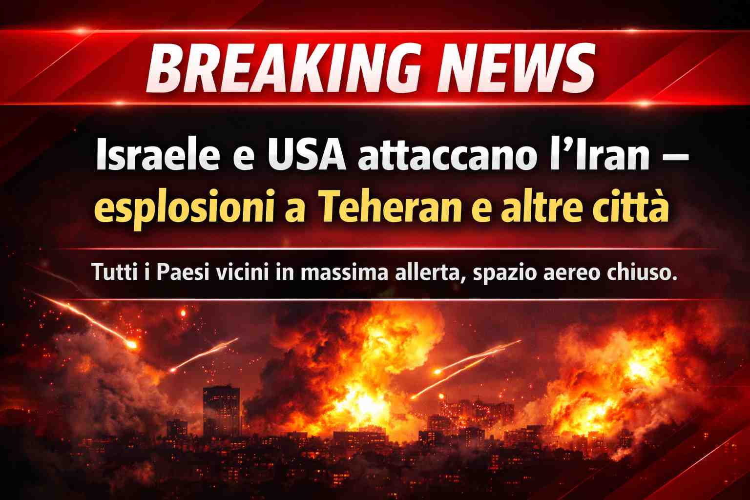TEHERAN – Nuova e drammatica escalation in Medio Oriente. Israele e Stati Uniti hanno lanciato un attacco coordinato contro obiettivi in Iran, con esplosioni segnalate nella capitale Teheran e in altre aree strategiche del Paese.