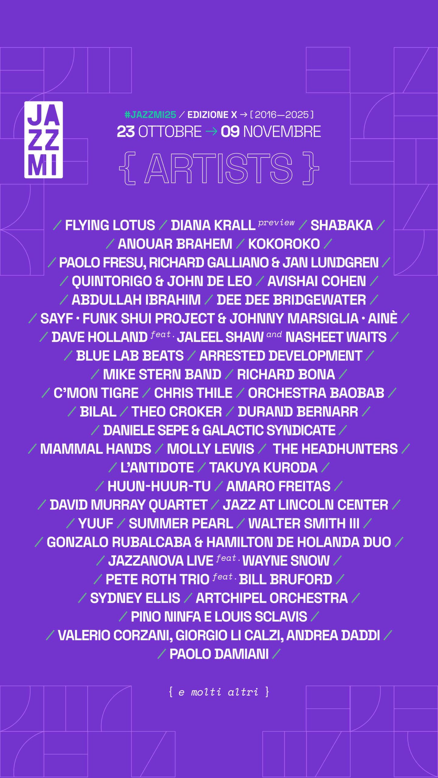 Il cartellone della decima edizione di JAZZMI si completa. Un traguardo importante che sarà celebrato con un ricco e articolato calendario: oltre duecento concerti con artisti nazionali e internazionali, progetti originali, collaborazioni inedite, grandi ritorni e tante novità.