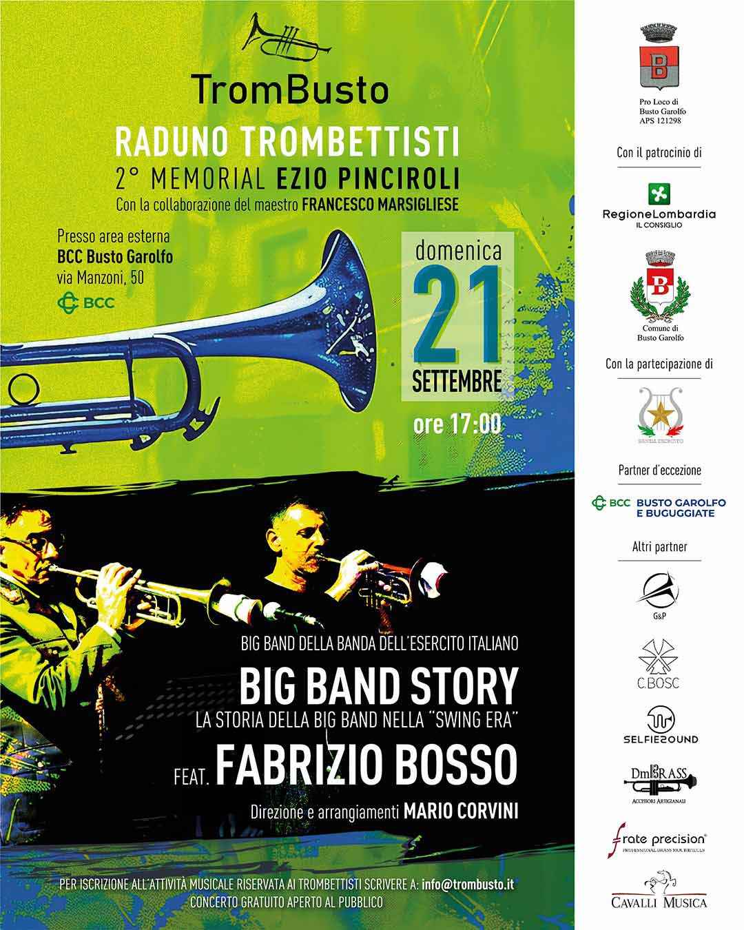 «Quest’anno abbiamo fatto un salto di qualità notevole. Oltre alla presenza ormai affezionata di Fabrizio Bosso e al contributo prezioso del maestro Francesco Marsigliese, grazie al quale siamo riusciti ad avere con noi la Big Band dell’Esercito Italiano – lui è infatti il nuovo tenente della Banda – abbiamo costruito un programma che coinvolge i trombettisti fin dal mattino», racconta con entusiasmo Angelo Zanzottera, presidente della Pro Loco di Busto Garolfo e anima dell’evento, assieme ad Angelo Pinciroli noto produttore di trombe al quale si deve la presenza delle star della manifestazione. «Dalle 9 del mattino fino alle 16, i trombettisti iscritti avranno la possibilità di provare insieme i brani scritti appositamente per loro. In base al livello musicale, ognuno riceverà una parte adeguata per suonare in gruppo accanto a grandi nomi, come Bosso stesso. Quest’anno contiamo di avere almeno un centinaio di trombettisti. Sarà una giornata straordinaria, sia per chi suona sia per chi ascolta».