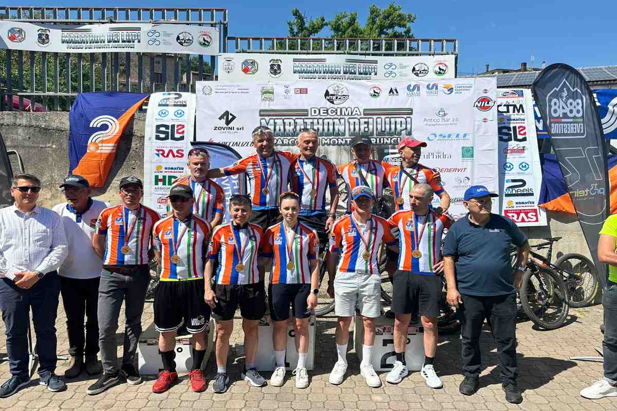 Il Parco Naturale dei Monti Aurunci in una giornata di sole primaverile ha fatto da cornice al secondo traguardo nazionale delle bici targate CSI. Il decennale della Marathon dei Lupi domenica 19 aprile era valido sui 31 km del percorso GF come Campionato Nazionale Gran Fondo CSI MTB ed ha assegnato dodici maglie tricolori. All’evento organizzato dalla Asd Mtb Pico hanno partecipato atleti dalle Marche, Abruzzo, dalla Campania e naturalmente principalmente dal Lazio. Il più veloce di giornata è stato il neocampione della categoria Elisport, Matteo Fuceglia della Mtbike Cassino (1h28’51 il suo tempo), che ha preceduto di 11 secondi Mario Baris della Estasi Mountain Bike, del Comitato campano del CSI Sessa Aurunca, e Vincenzo Della Rocca della Croccanti Racing Team, entrambi poi premiati sul podio con la maglia tricolore scudettata arancioblu, come campioni nella categoria M2 e M4. Tra le donne il miglior tempo è stato fatto registrare da Cristina Spagnolo (Team Like Mtb Castelli Romani) con il crono di 2h09’04. Ben 329 i concorrenti, di cui 170 schierati sul percorso GF in corsa per il titolo Nazionale Gran Fondo CSI MTB. Oltre cento gli iscritti alla Marathon: 55 km prima del traguardo, dove per primo è transitato Emiliano Dominici in maglia Ciclotech, facendo il vuoto alle sue spalle chiudendo in 2h33’15” con un vantaggio di 4’36” su Pasquale Di Lorenzo (Rokka Bike), ed Antonio Falasca (Carovilli Bike) a 7’15”.