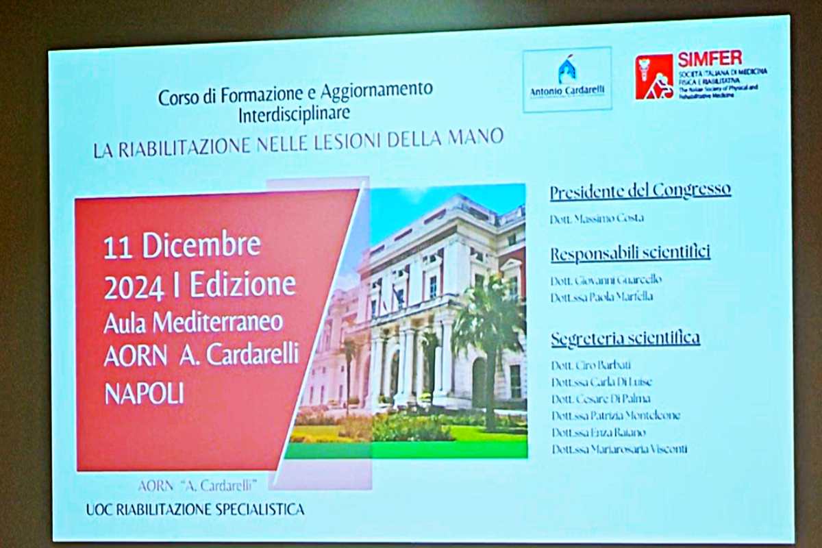 Al Cardarelli un’intera giornata di studio e di confronto tra i massimi esperti della riabilitazione nelle lesioni della mano che per l’occasione ha visto giungere a Napoli da tutta Italia personale dell’INAIL.