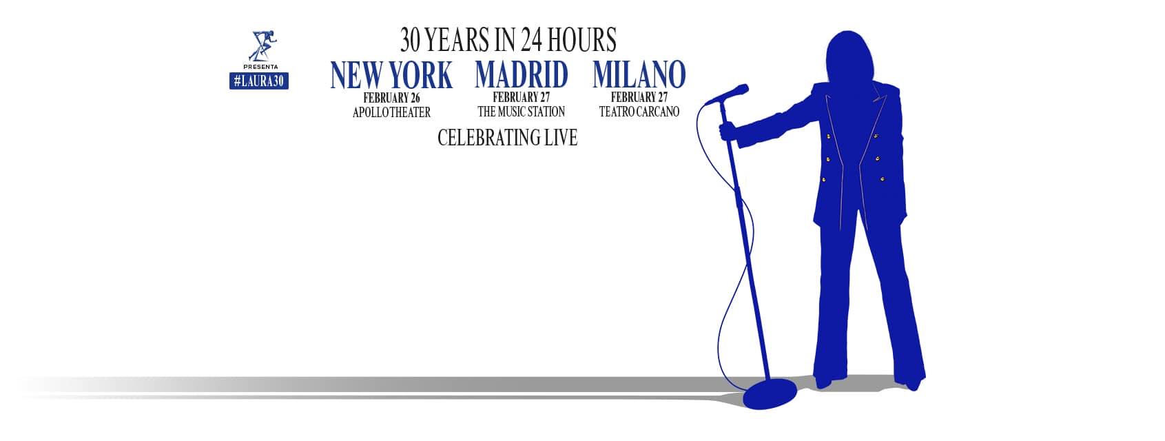 Laura Pausini è prontissima a rendere omaggio ai suoi 30 anni di carriera esibendosi in una maratona live tra il 26 e il 27 febbraio. Con il nome di #LAURA30, la cantante si esibirà in tre performance live, aperte al pubblico, in tre differenti città ossia New York, Madrid e Milano.