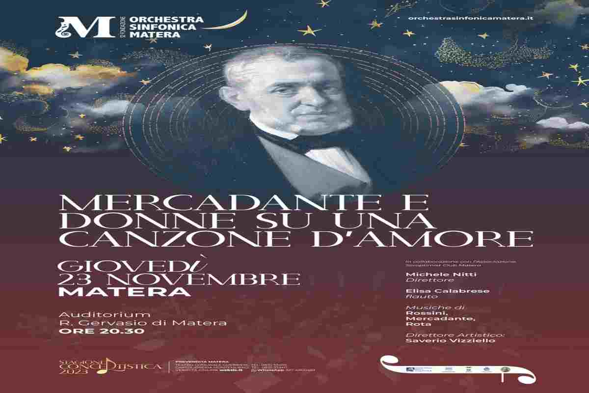 Le musiche scelte per lo spettacolo Mercadante e donne su una canzone d’amore sono un omaggio alle donne, risolute come la Isabella de L’Italiana in Algeri, talentuose come il flauto solista Elisa Calabrese, ispiratrici della bellezza della composizione di Nino Rota. L’Orchestra Sinfonica di Matera diretta dal Maestro Michele Nitti aprirà il concerto con l’Overture da L’Italiana in Algeri di Gioachino Rossini, una delle partiture più fantasiose e felici, per invenzione melodica e inedite soluzioni formali, del compositore di Pesaro. Il Concerto in Mi minore per flauto e orchestra di Saverio Mercadante è una composizione che metterà in luce il virtuosismo del flauto solista, la talentuosa Elisa Calabrese. A concludere il programma sarà il grande organico, con cinquanta strumentisti, dell’Orchestra che eseguirà la Sinfonia n.4 sopra una canzone d’amore di Nino Rota. “Primo direttore del Conservatorio Duni di Matera – ricorda il direttore artistico della Fosm Saverio Vizziello – Rota è particolarmente noto al grande pubblico per la sua attività di autore di colonne sonore di film. Meno note sono le quattro sinfonie da lui composte, fra queste c’è un autentico capolavoro la Sinfonia n.4, che deve la sua denominazione “sopra una canzone d’amore” al terzo movimento, l’Andante sostenuto, è uno dei temi romantici più belli del ‘900”.