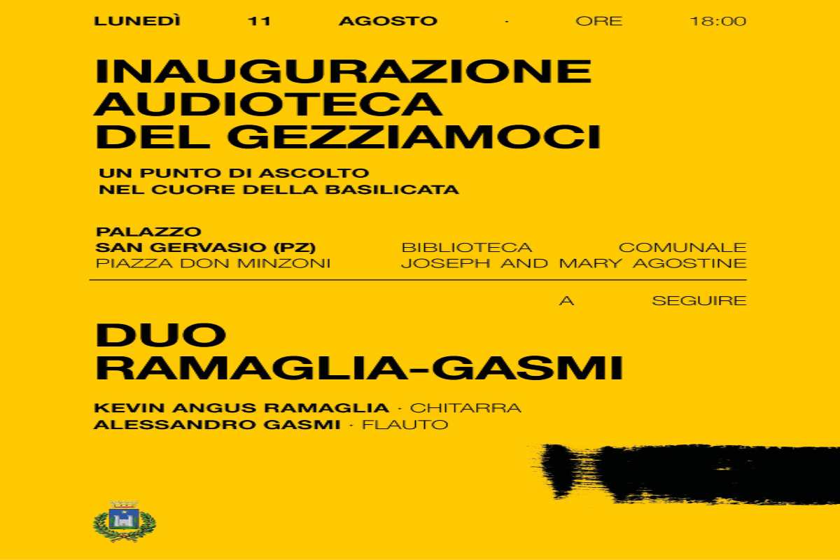 Nella biblioteca dedicata a Joseph e Mary Agostine, il progetto dell’Onyx Jazz Club in collaborazione con il Comune di Palazzo San Gervasio. A seguire, nella Villa delle Arti, il concerto del Duo Ramaglia-Gasmi.