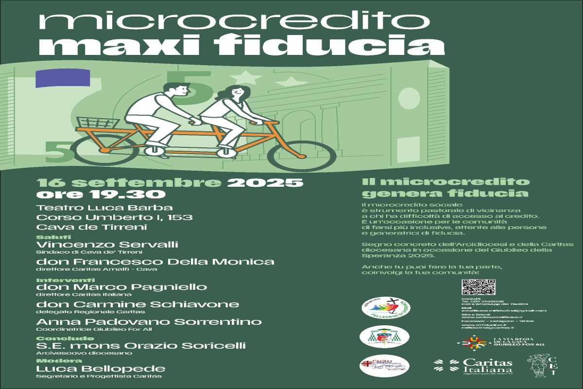 Martedì 16 settembre 2025, alle ore 19.30, presso la Sala Teatro Luca Barba di Cava de’ Tirreni, verrà presentato il progetto “Mi fido di noi”, il programma nazionale di microcredito sociale promosso dalla Conferenza Episcopale Italiana e da Caritas Italiana.